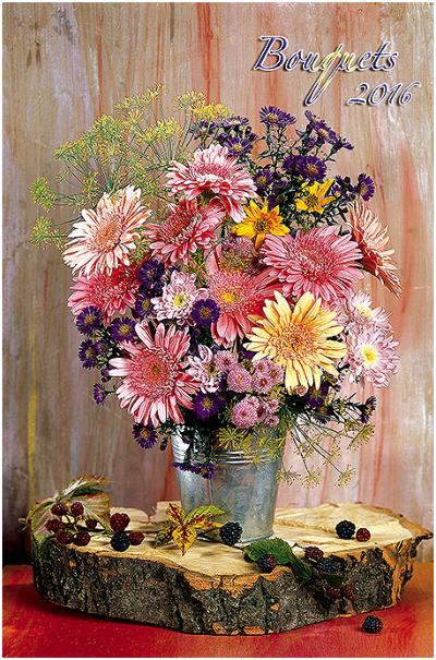 Bouquets SPECIFICATII: 31,5 x 48 cm 12 file + copertă Spirală metalică dublă albă Carton dublu cretat lucios 130 g / mp Personalizare capac 31.5 x 15 cm Spate duplex 300 g / mp