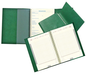 - Finisare: spirala metalica argintie, coperta PVC, supracoperta material imitatie piele, neburetata, cu clapeta si magnet