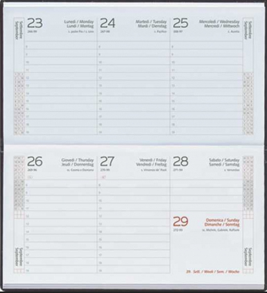 Interior IT480 AGENDA de buzunar, datata saptamanal format: 8×15 cm nr. pagini: 128 pag hârtie: alba 60 g/m2 imprimare: 2 culori finisare: cusut , legat, coperta buretata limbi utilizate: It, En, Fr, De Diponibil pentru modelul: MATRA, BRISTOL Modelele prezente pe acest tip de interior sunt: Matra Bristol
