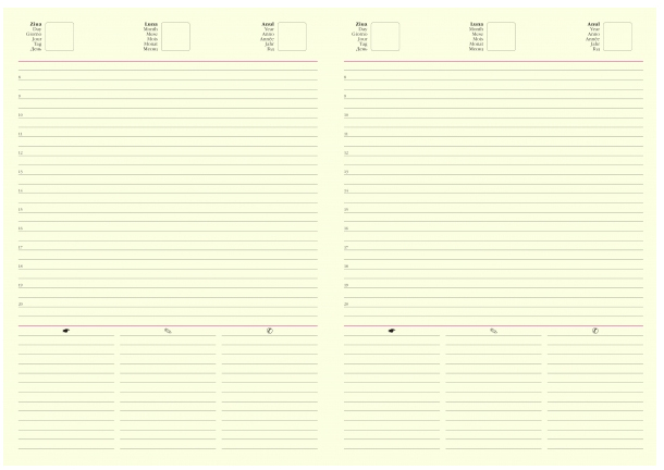 Interior R449 Ivory format: 17x 24 cm, nr. pagini: 320 + harta Romaniei hârtie: ivoire 70 g/m2 imprimare: 2 culori finisare: cusută, legată coperţi buretate colţuri perforate semn de carte Disponibil pentru modelul GIAVA Modelele prezente pe acest tip de interior sunt: Giava